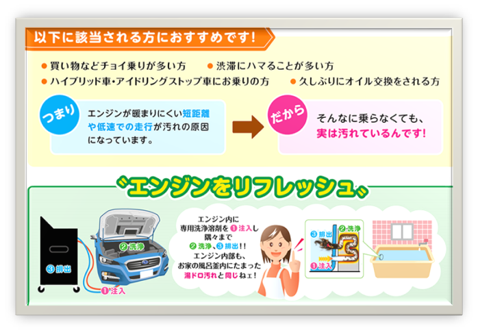 エンジンオイルのもつ性能を100%発揮できます!!!