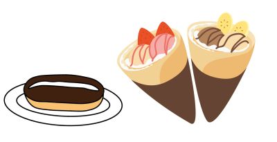 お寿司・甘いデザート(特にエクレア・クレープ)