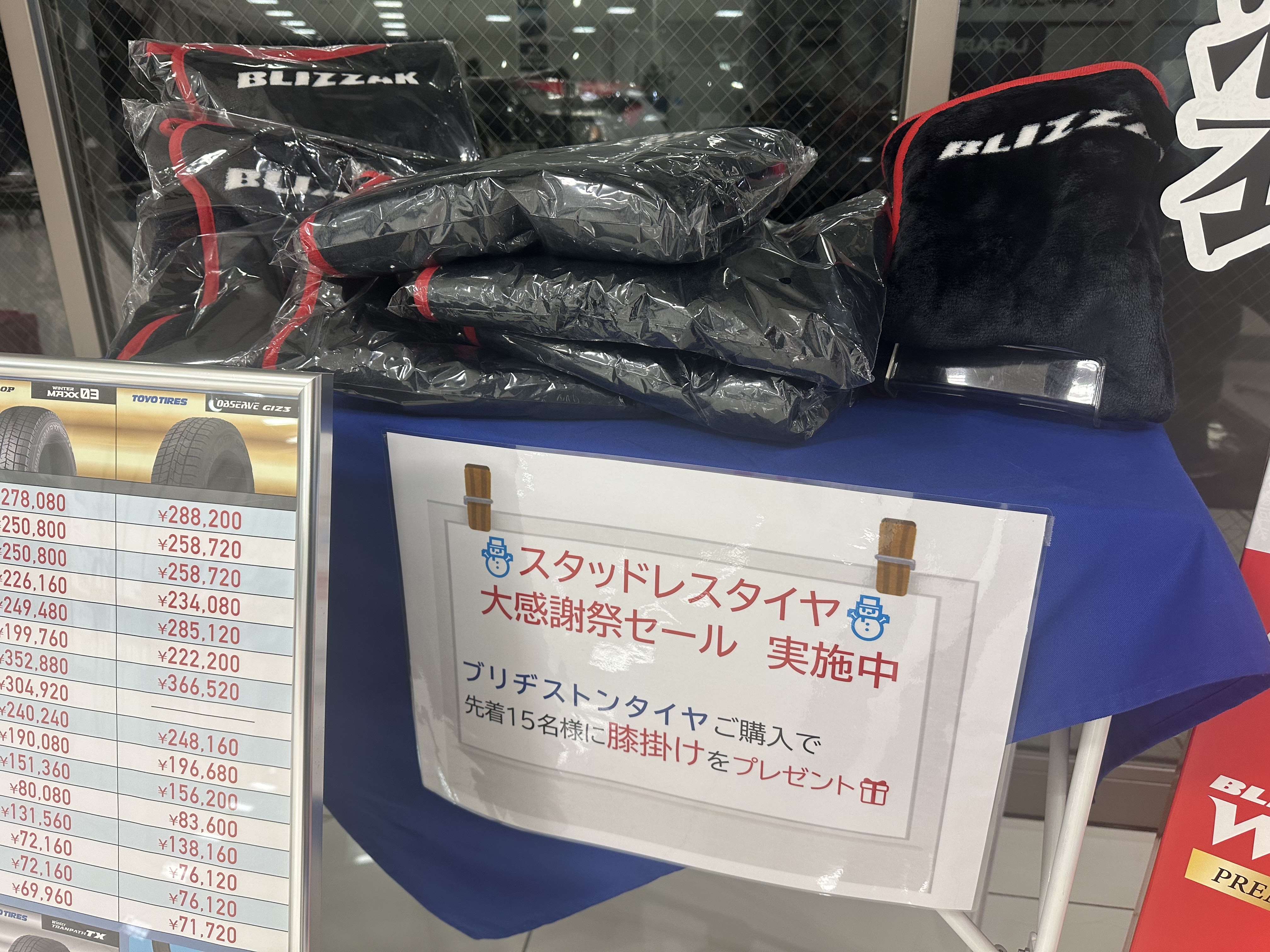 ブリヂストンご購入の方にはもれなくブランケットプレゼント中です。