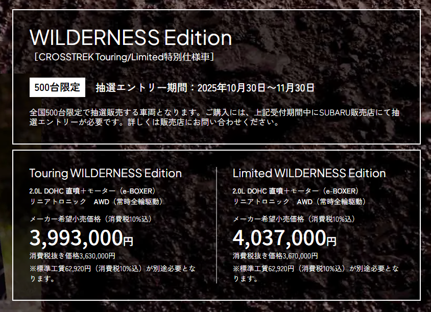 500台限定 クロストレックWILDERNESS Edition抽選販売開始!