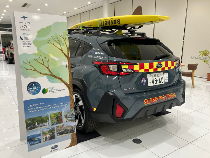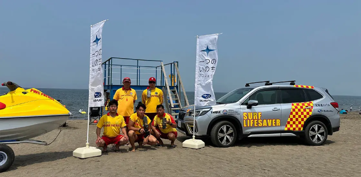 北海道スバルは、「ひとのいのちを守る」をテーマに、2022年より日本ライフセービング協会の水辺の事故ゼロを目指す活動を支援しています。