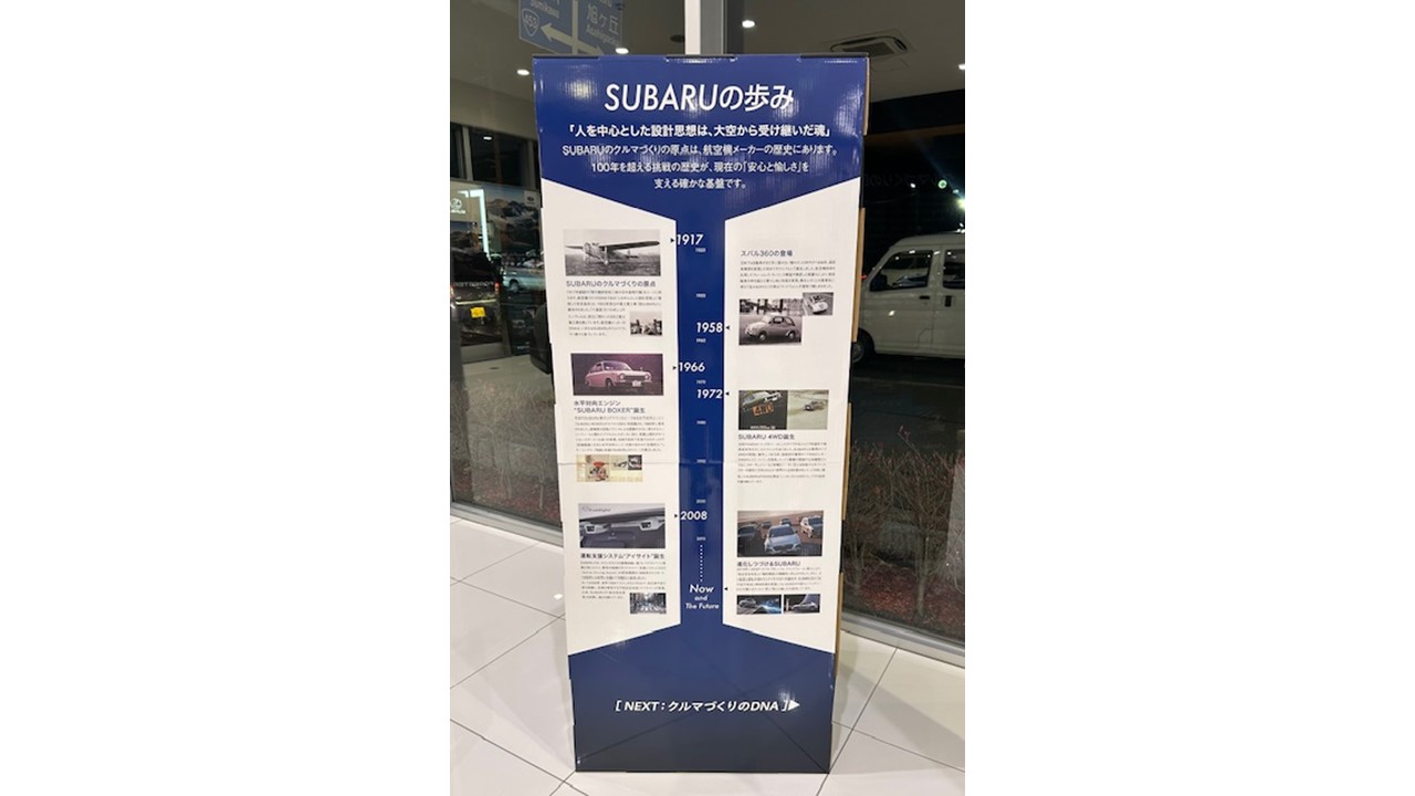 また、SUBARUの歴史を知れるパネルも用意しておりますので、