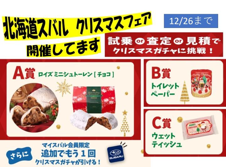 お好みの角度からサンタ×スバルのコラボ写真をパシャリ。