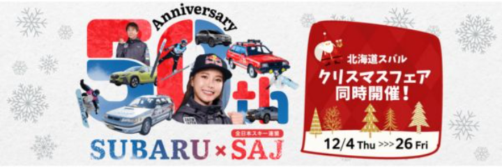 今回は、スバルと全日本スキー連盟(SAJ)協賛50周年を記念した特別なフェアのご案内になります。