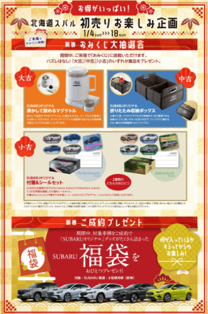 大吉・中吉・小吉とSUBARUにまつわるさまざまな景品をプレゼント!