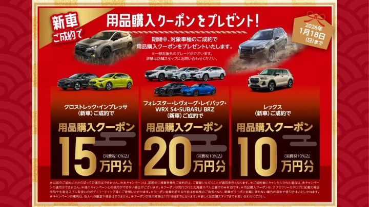そして、対象車種のご成約で、用品購入クーポンをプレゼント!