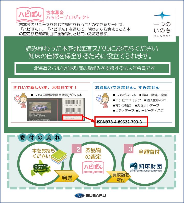 「ハピぼん 古本募金」を通じて、知床財団の自然保全活動へ寄付させていただきます。