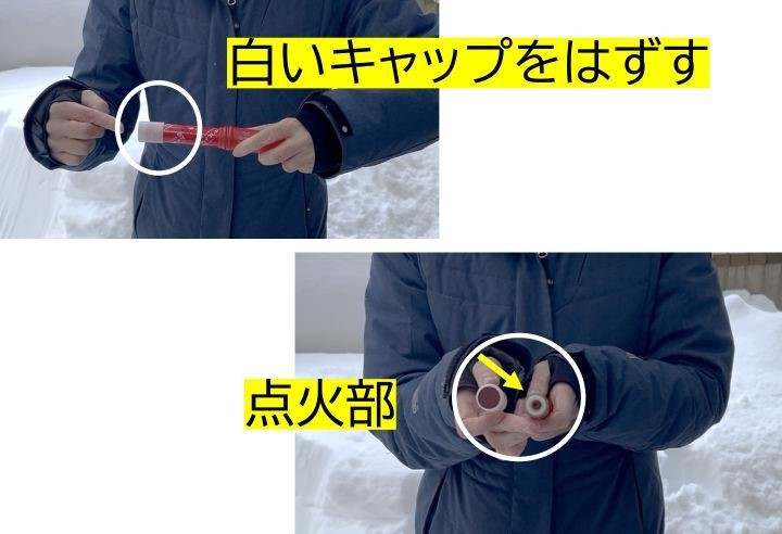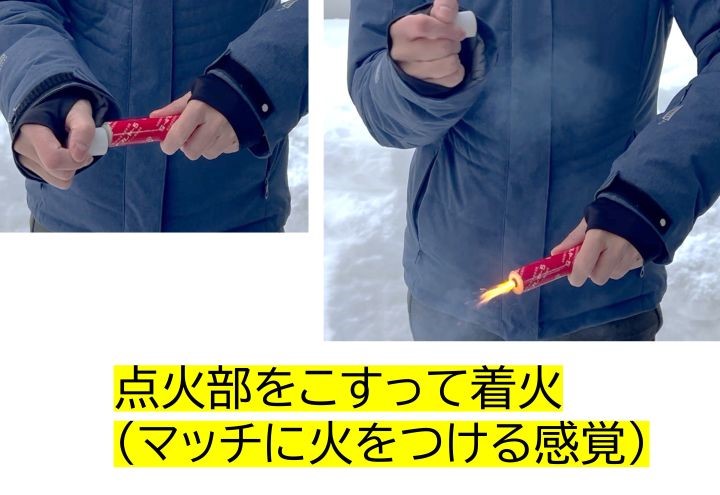 今回は発炎筒の使い方をお伝えします。