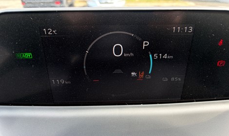 スタート時点でODOメーター119㎞、走行可能予測距離514㎞、85%