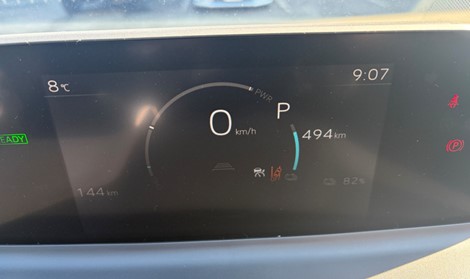 スタート時点でODOメーター144㎞、走行可能予測距離494㎞、82%