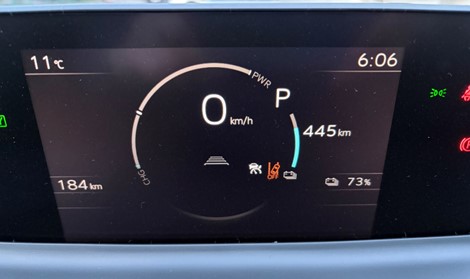 ODOメーター184㎞、予測走行可能距離445㎞、73%