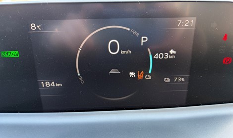 ODOメーター184㎞、予測走行可能距離443㎞、73%