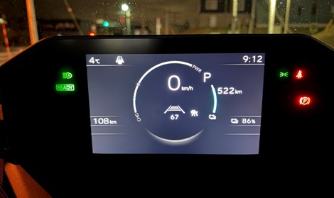 スタートから58㎞走行、予測走行可能距離522㎞、充電量86%(山道走行後も案外減ってないかな)